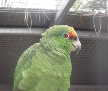 This is still a fairly dark image, but it has been taken outdoors, in soft natural lighting. All of their colours are readable, and their eyes are very clear.