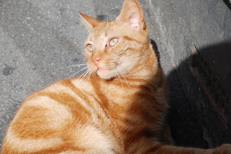 Even though this cat is lying down, there is enough of their head and shoulders lifted from the ground for this to make a nice portrait. Bonus points for being taken outdoors too!